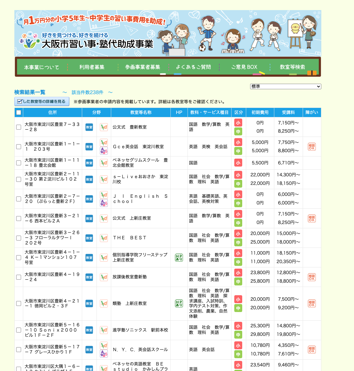 『大阪市習い事・塾代助成事業』に参画しています