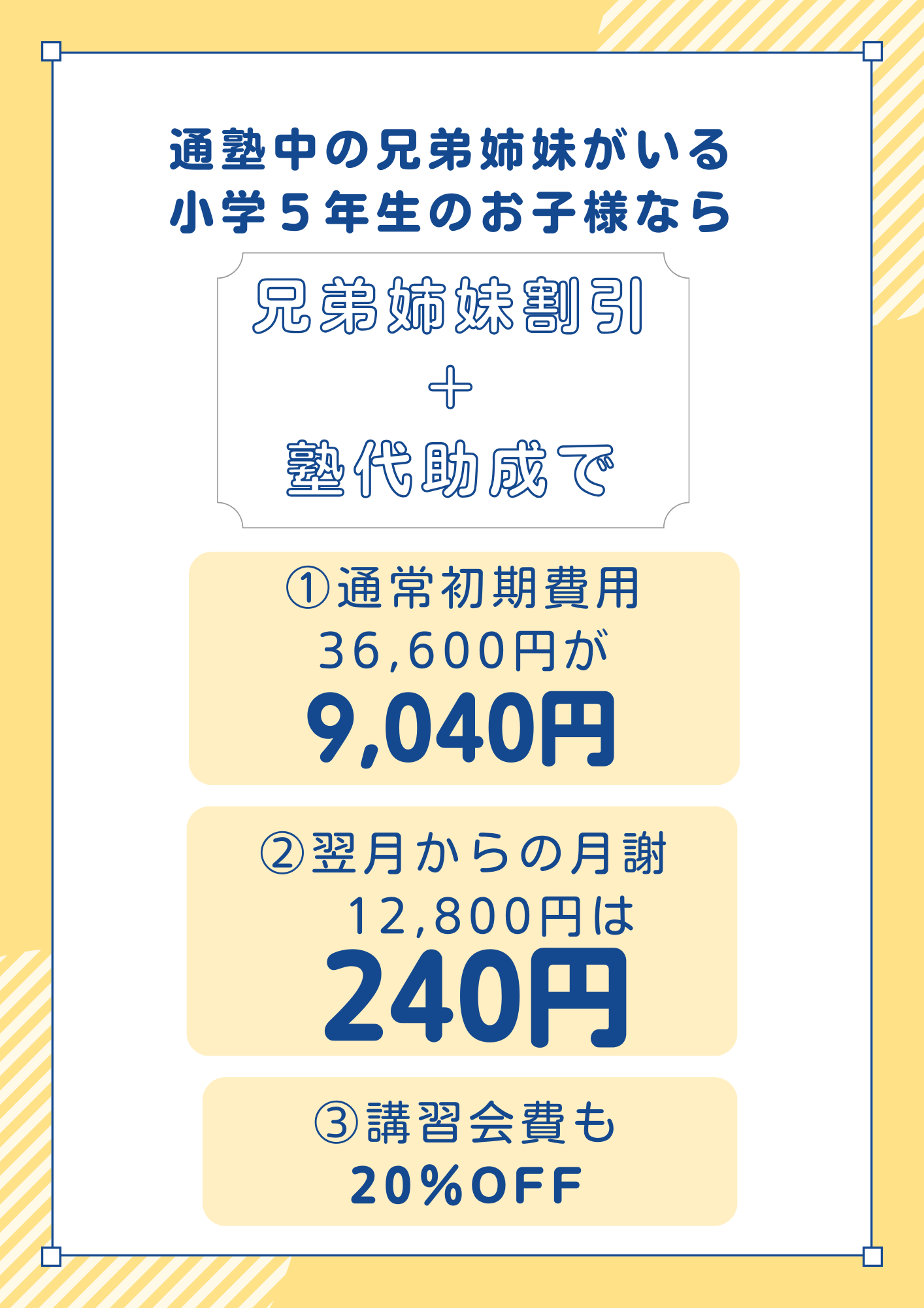 ①入塾金11,000円が…家族割で 「0円」!